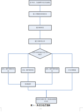 资源简介: 流程图简介:客户在购车完成,并交纳相关费用办理相关事宜之后,接下来就是车辆档案管理系统的任务了。首先输入车辆的基本档案信息,并且建立车辆维修档案和车辆年检档案。在后续工作中,车辆管理系统的任务就是在遇到相关任务时,对系统进行相应的添加、查询